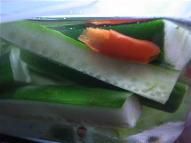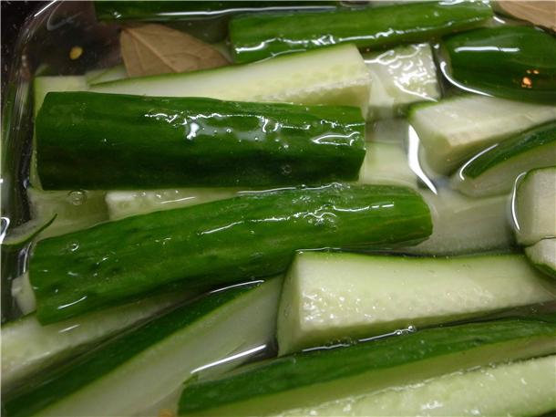 放入四條切條的小黃瓜
