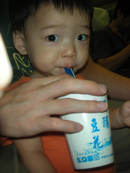 直到退房我們把他丟到嬰兒車上,上遊覽車,坐車到餐廳才醒來