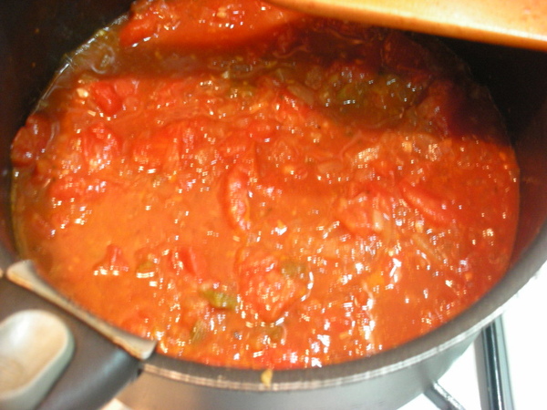 4. 加入蕃茄罐頭,邊翻動邊熬煮約10~20分鐘