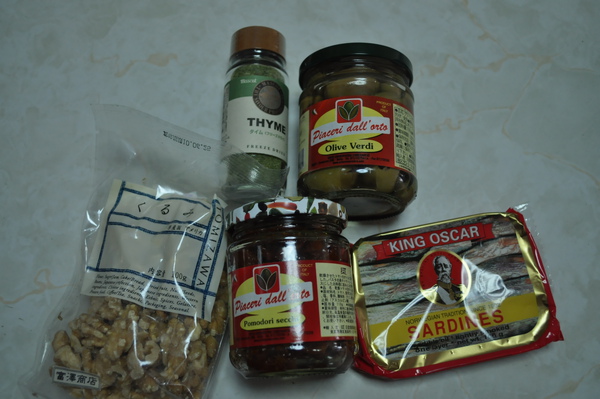 把番茄,橄欖,cheese,沙丁魚全部切成小丁