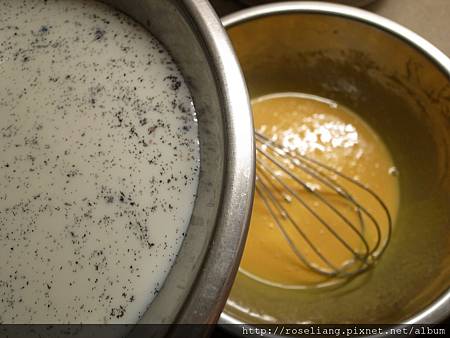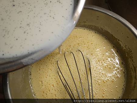 煮好的香草牛奶加入