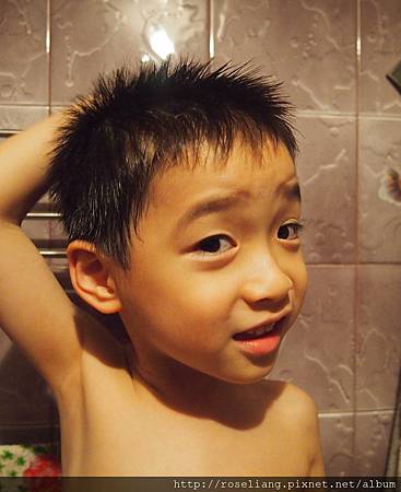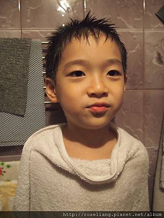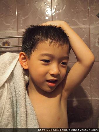 這孩子現在都會自己擦頭髮了咧